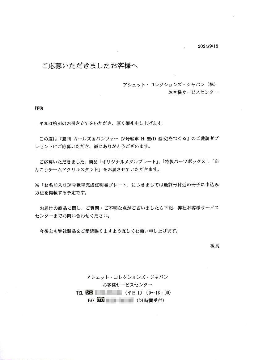 - 38号発売頃到着したプレゼント